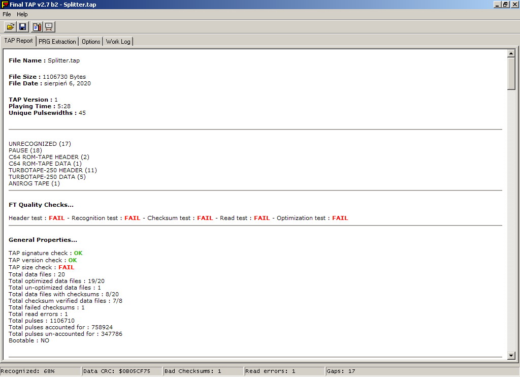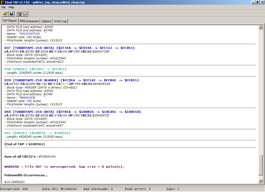 Mam za to dużo lepsze wieści odnośnie wydania kasetowego. Niechaj przemówią tutaj raporty Final TAP-a. Oto wersja, którą z takim trudem udało nam się z Radkiem wyprodukować.