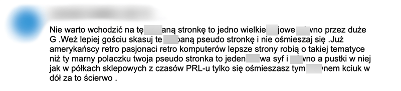 Nawet komentarze takie jak np. ten poniżej nie przeszkadzają i dodają kolorytu w tym hobby. Piszcie więcej komentarzy! Wiecie jak to mówią: „Dobrze czy źle – ważne aby pisali” 🙂