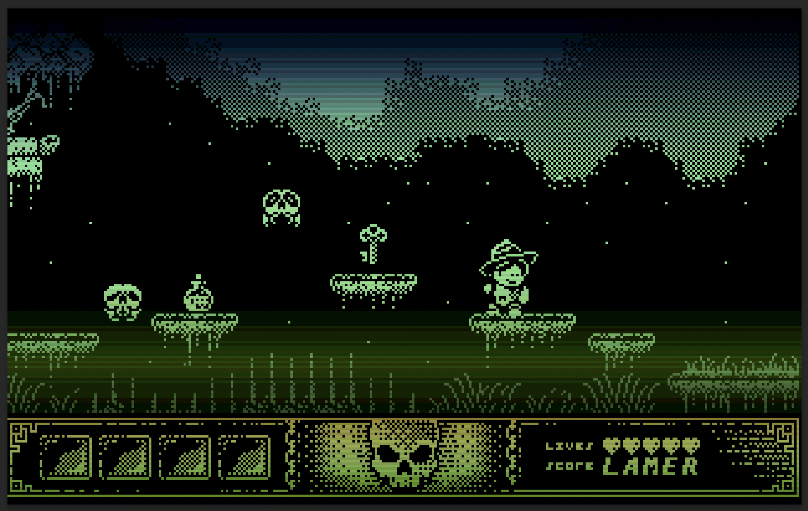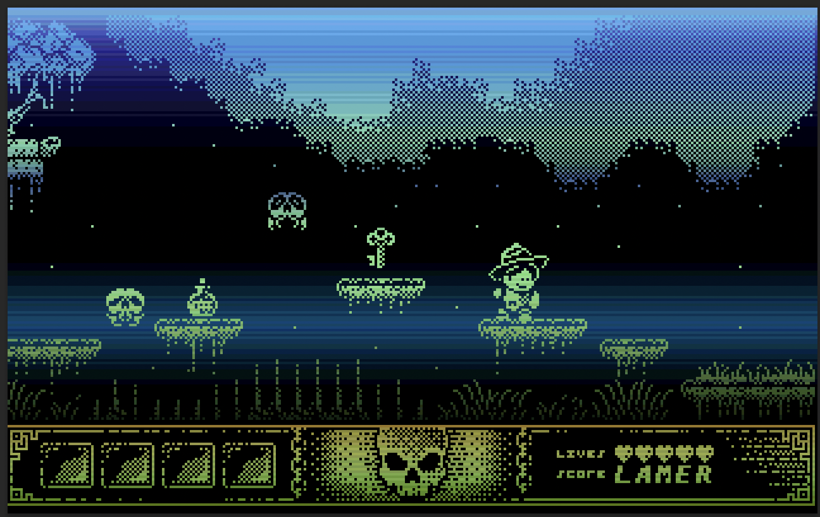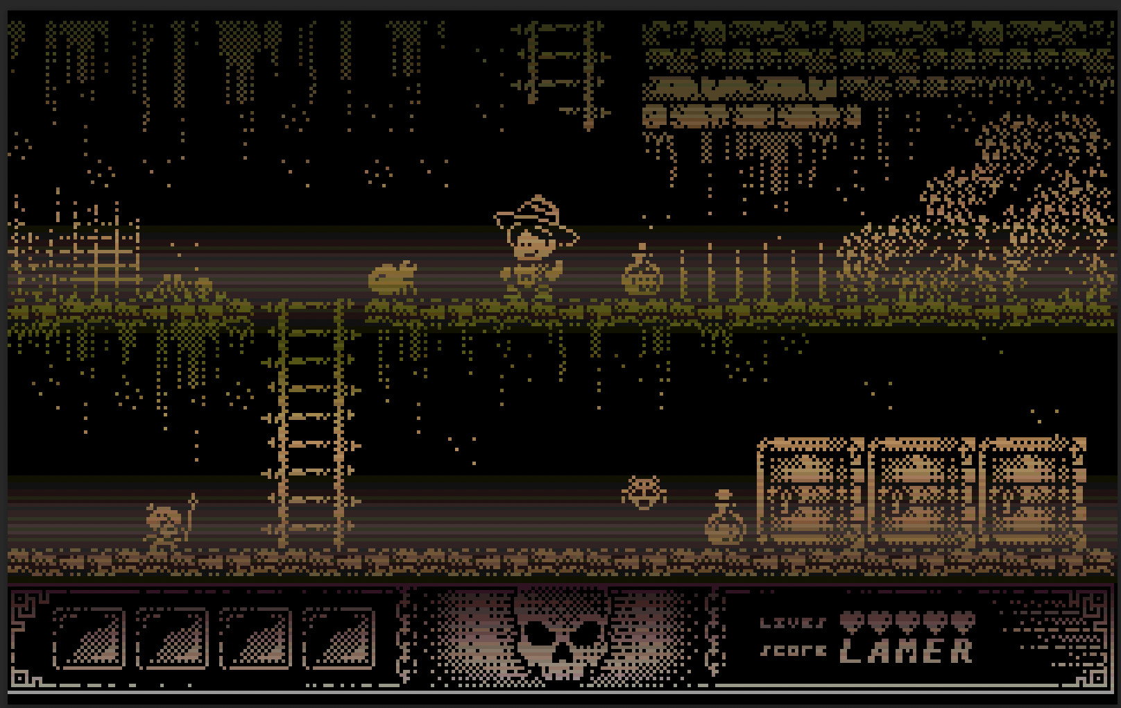 And to put an end to cut the speculation off… I have no intention of improving the graphics in this game or in any way criticizing or insinuating anything to the graphic designer of Tony’s gfx. He did a great job and I think I understand his passion for monochromatic graphics and artistic decisions. However, I thought that graphics from Tony would be a perfect way to practice my approach and my technique of creating graphics on the Amiga with copper raster bars.