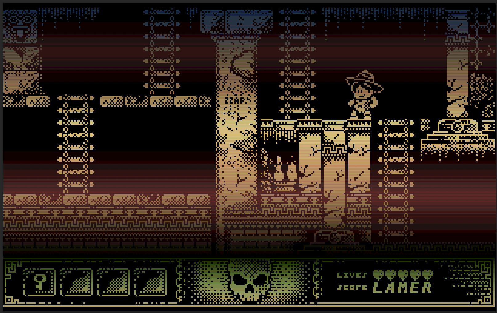 The graphics in the game are, as we know, monochromatic, and I thought about how they might look like if they were colored with copper.